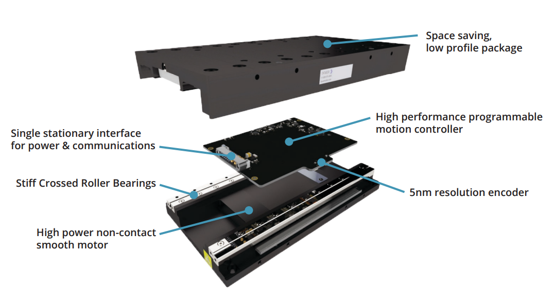 Engineered for imaging and diagnostic systems, SmartStage™ stages deliver nanometer-level precision, exceptional stiffness, and seamless multi-axis integration. Simplify motion design and accelerate prototyping while achieving faster, more reliable performance across every axis.